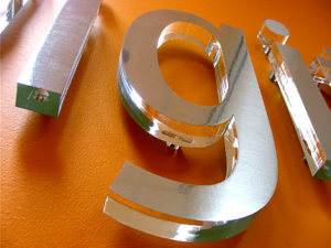 Malzeme/Özellik: Paslanmaz 304 krom saçtan yapılan kutu harfler, belli aşamalardan geçirilerek boya kısmında akrilik boya ile istenilen renklere boyanır. Ön yüzeyi parlak krom yan yüzeyleri boyalı veya filotalı krom harfler boyalı olarak imalat edilir.